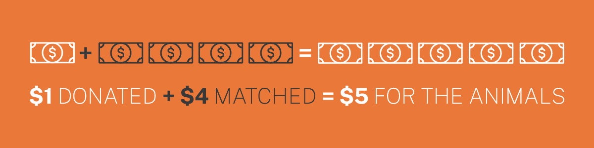 This Giving Tuesday weekend, you can 5x your impact for animals like Riley. Thanks to our wonderful donor, Sterling Pile Trust, every gift will be SUPER MATCHED up to $100,000 through midnight on December 2 to help animals like Riley! This means every $1 becomes $5 for animals in need.